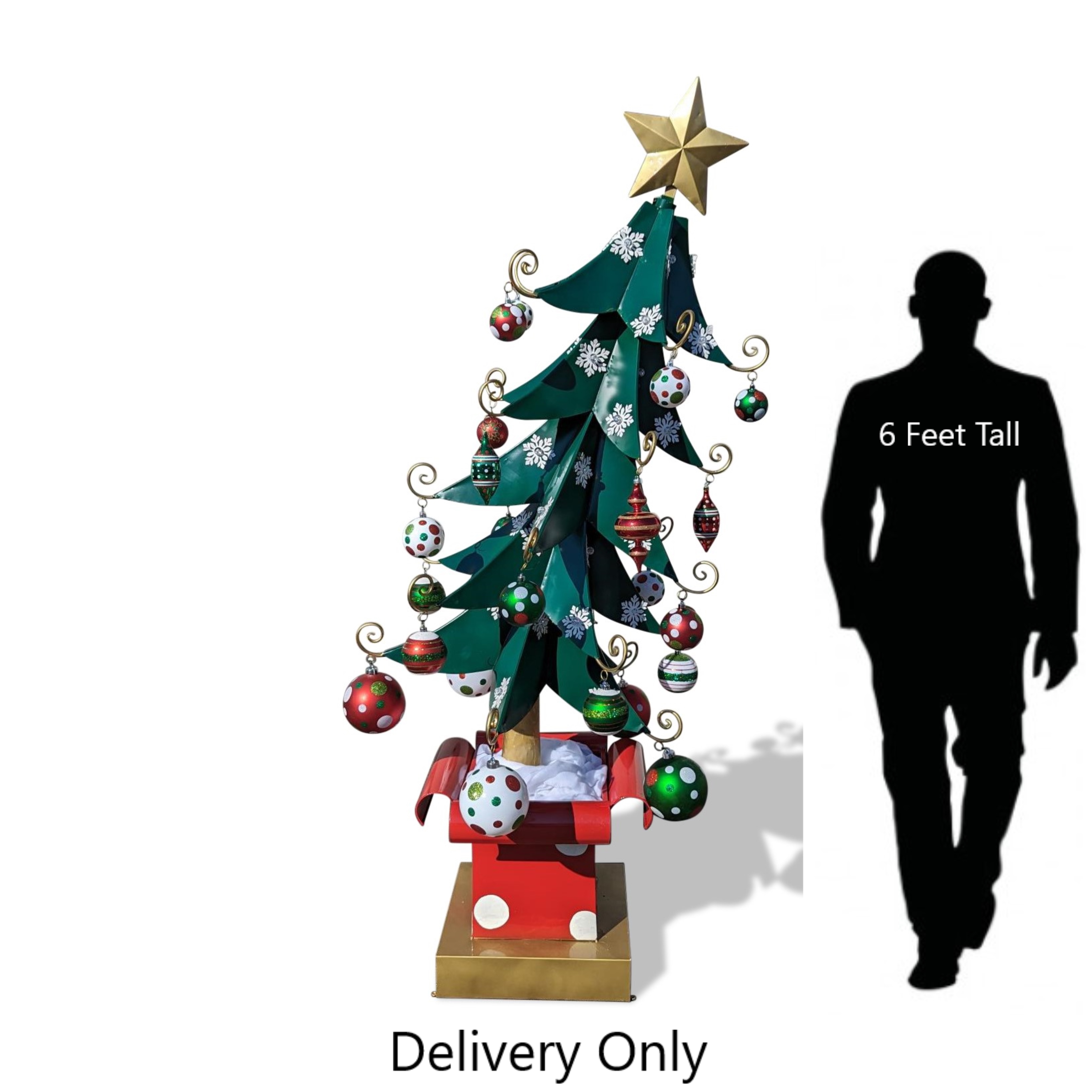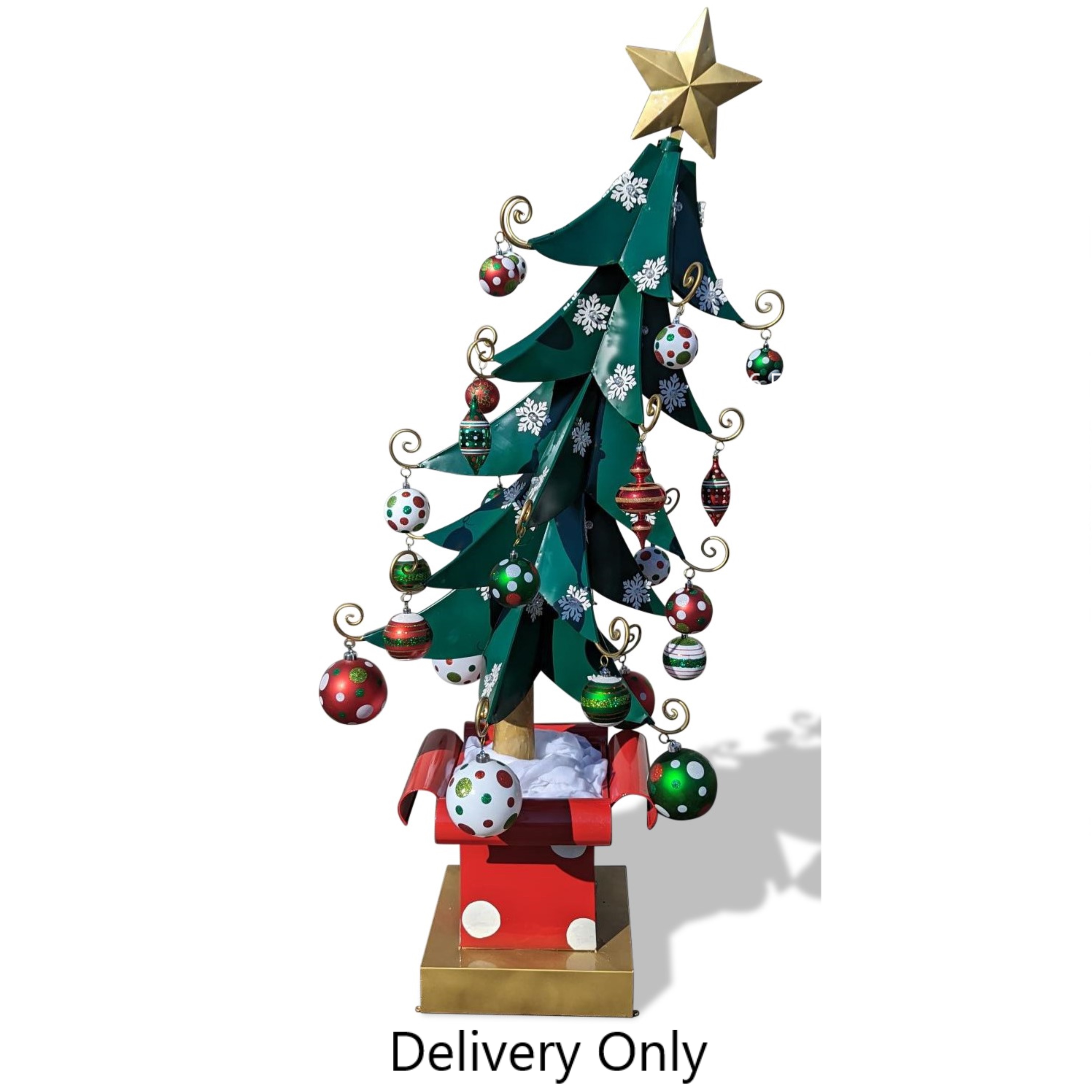 METAL CHRISTMAS TREE W/ ORNAMENTS 7 Feet Tall